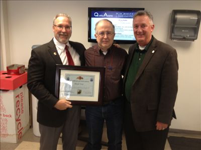 Local 618 Principal Officer Marvin Kropp , newly retired Floyd Farr and Local 618 President Mike Foster